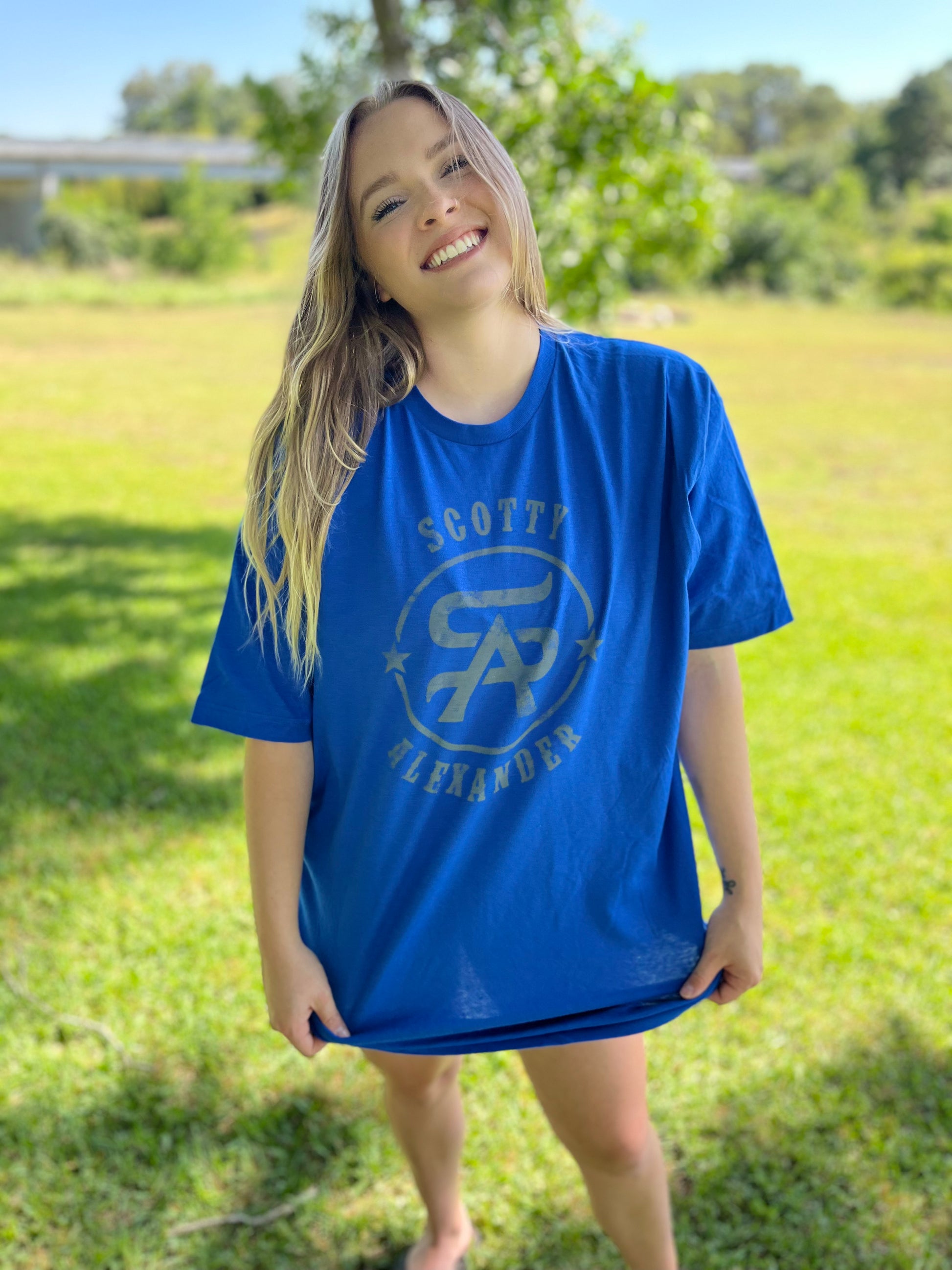 Blue Scotty Alexander Logo Women's Sleeper T Shirt